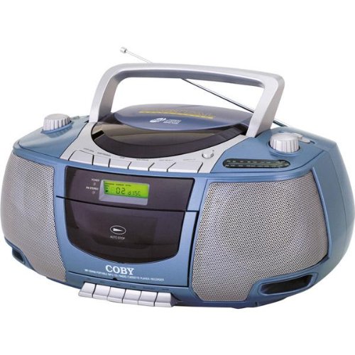 "Coby Blue Portable Stereo MP3/CD/Cassette Player With AM/FM Radio* Top-loading CD player with programmable track memory